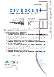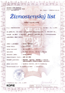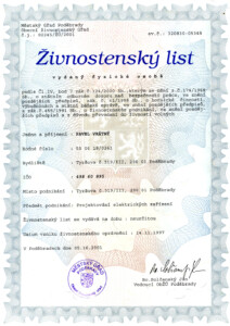 Pavel Vrátný je držetelem oprávnění o odborné způsobilosti ve smyslu vyhl. č. 50/1997 Sb k provádění montáží, oprav, údržby elektrického zařízení a hromosvodů bez omezení napětí včetně prostředí s nebezpečím výbuchu.